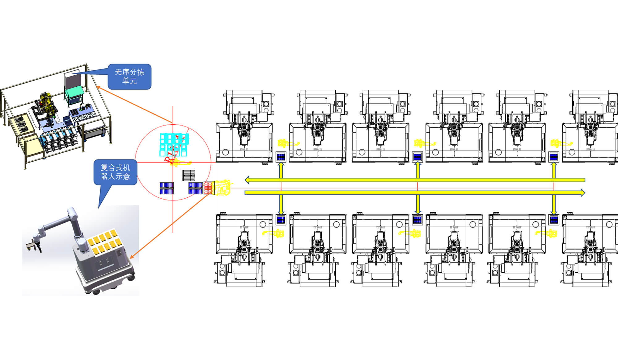 从上下料口的抽屉料仓抓取工件,移动至每台机床进行上下料,将加工完的工件下料至抽屉料仓